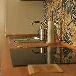 Outre une cafetière/théière, les équipements indépendants de la cuisine équipée comprennent un réfrigérateur et un four.